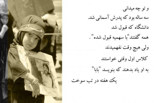 با دستم زدم روی شانه اش . دستشویی را نشانش دادم گفتم : زود دستاتو بشور و برو بشین توی مسجد که الآن یکی از فرماندهان جنگ می خواد بیاد سخنرانی .