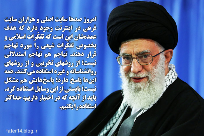 امروز صدها سایت اصلى و هزاران سایت فرعى در اینترنت وجود دارد که هدف عمدهشان این است که تفکّرات اسلامى و بخصوص تفکّرات شیعى را مورد تهاجم قرار دهند. تهاجم هم تهاجم استدلالى نیست؛ از روشهاى تخریبى و از روشهاى روانشناسانه و غیره استفاده مىکنند. همه اینها پاسخ دارد؛ پاسخهایش هم مشکل نیست؛ بایستى از این وسایل استفاده کرد. باید از آنچه که در اختیار داریم، حداکثر استفاده را بکنیم.